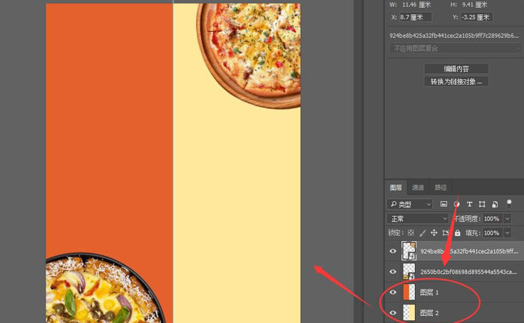 2.在背景图层上新建两个空白图层,并分别填充红黄颜色