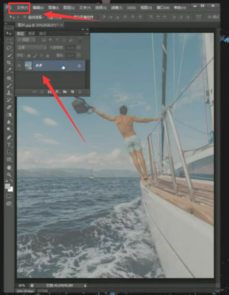 1.打开界面后,点击左上角的文件菜单,导入需要编辑的图片素材