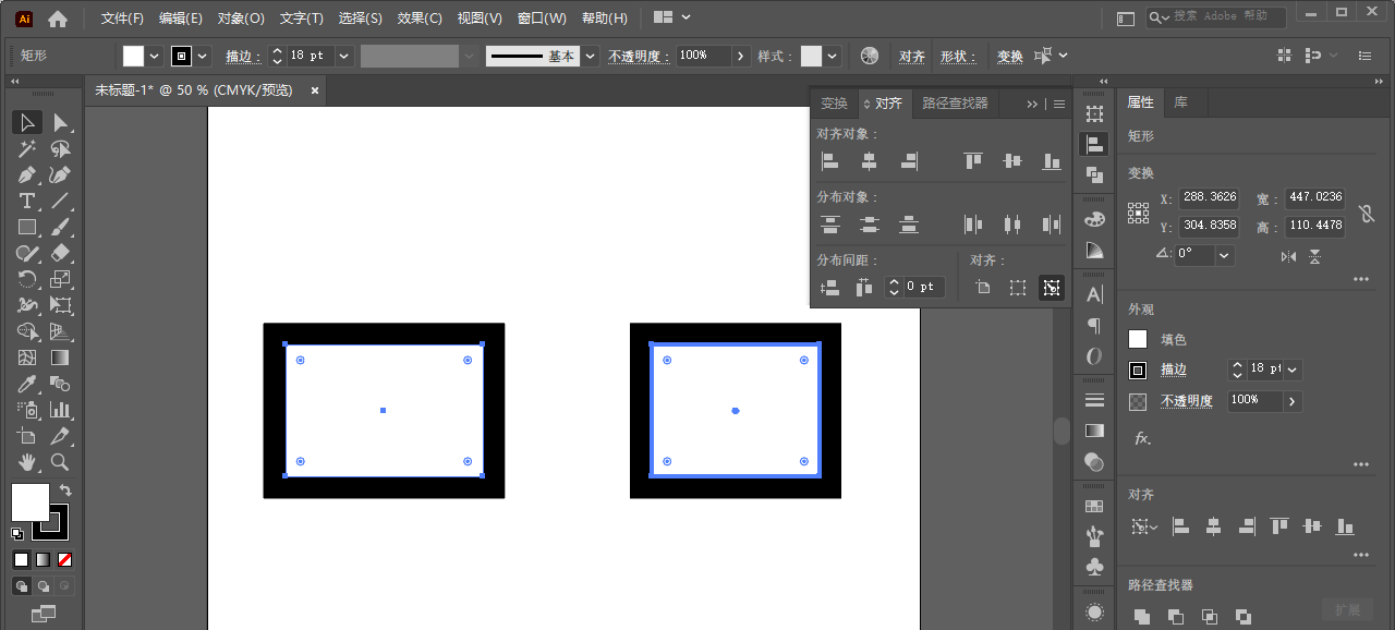 接着点击水平分布间距为0,发现路径没有相贴。