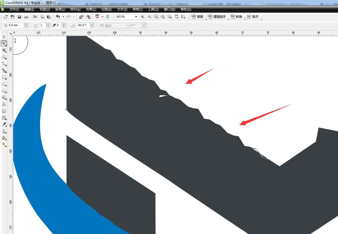 接着在线上点击一下,可以看到出现了锯齿的效果。