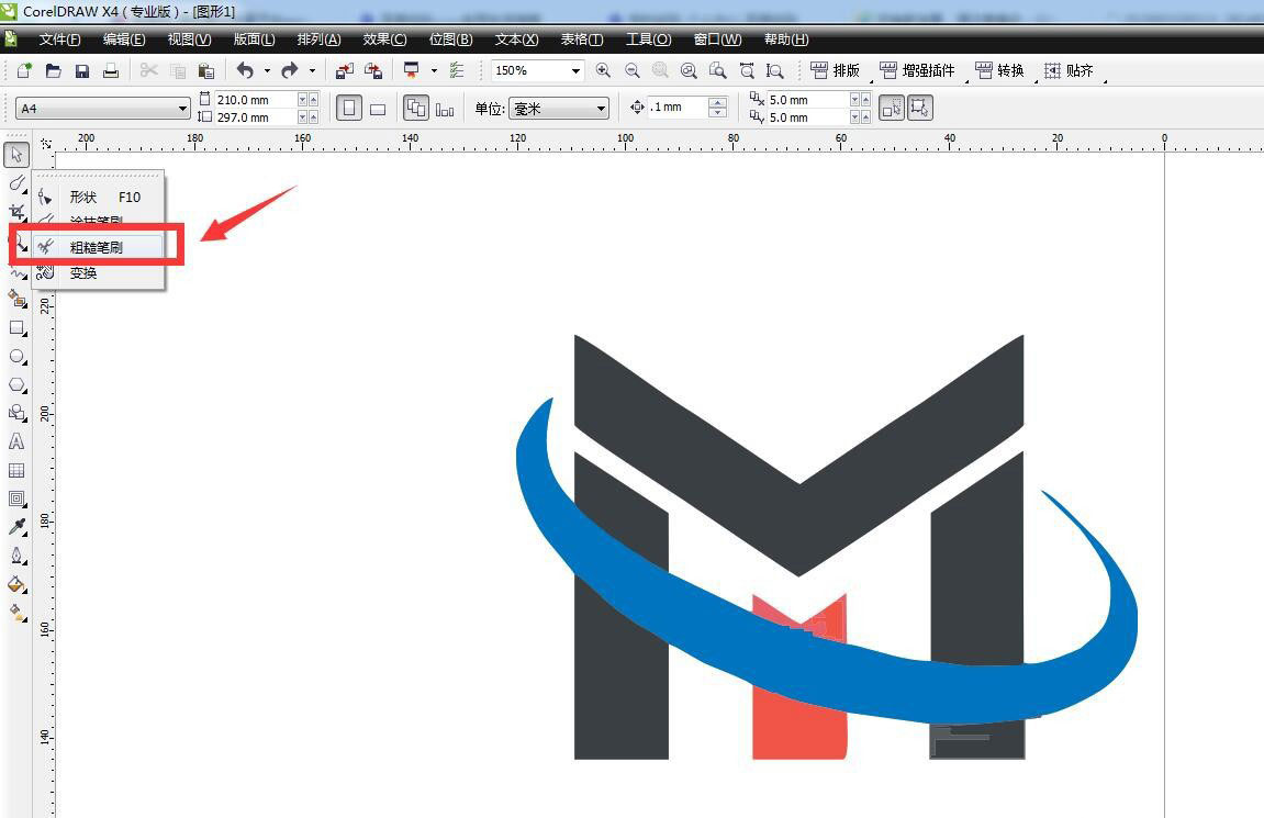 然后点击形状工具组,选择粗糙笔刷。