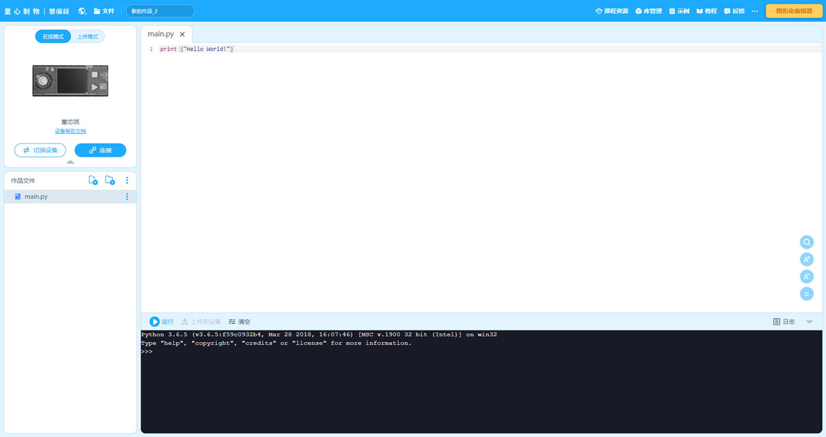 首先打开mBlock5慧编程,点击窗口右上角的按钮,进入Python编程模式;