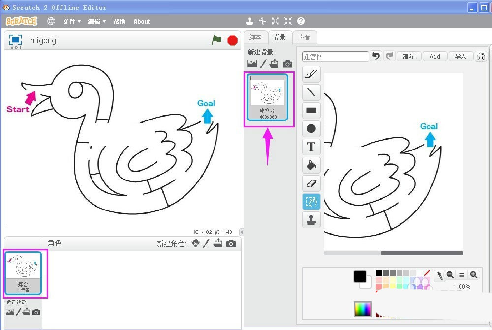 找到迷宫图所在的位置,在背景中导入迷宫图;
