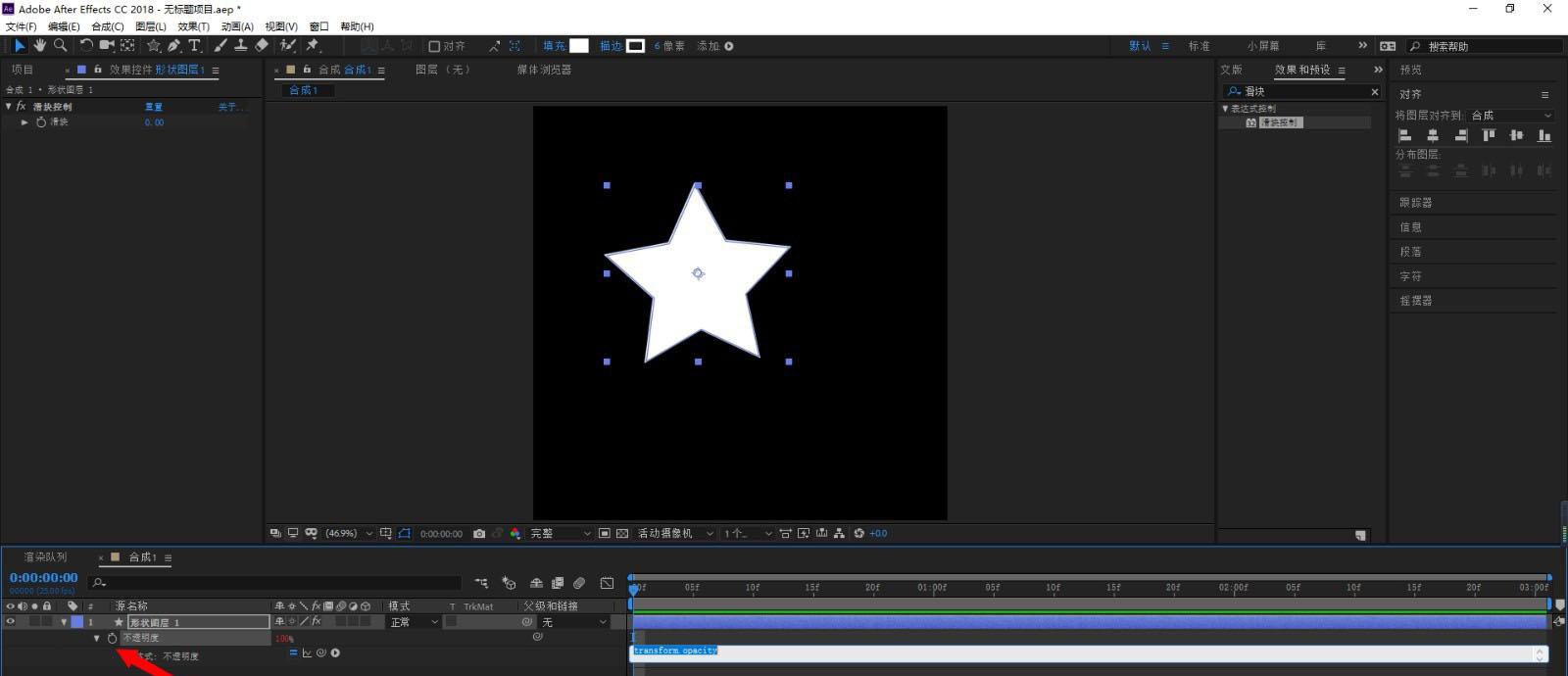 4.然后拉动皮筋,使不透明度与滑块关联,会自动生成表达式