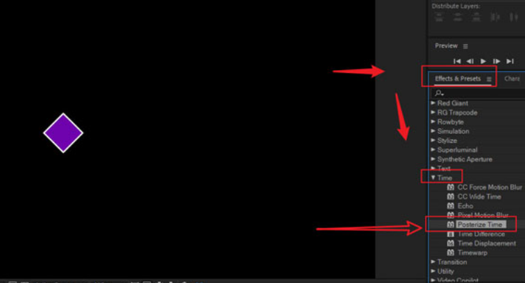 3.在效果预设面板中找到time栏目,为形状图层添加Posterize Time效果
