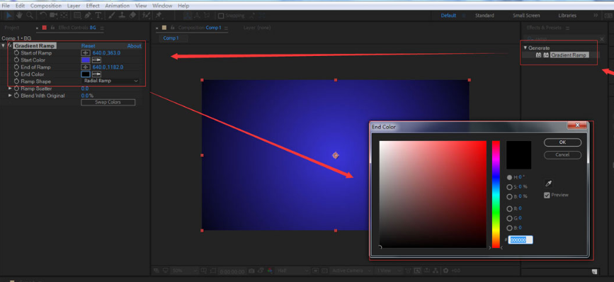 1.打开界面后,为背景层添加深蓝的渐变特效