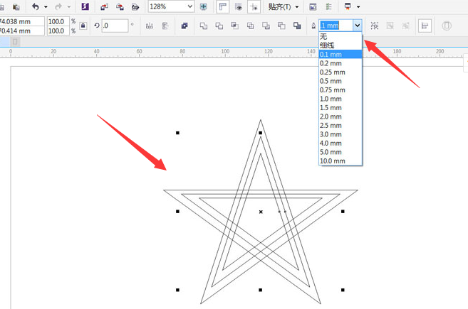 2.按住shift键复制两个五角星,分别向内外拖动0.1mm