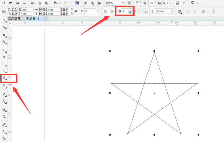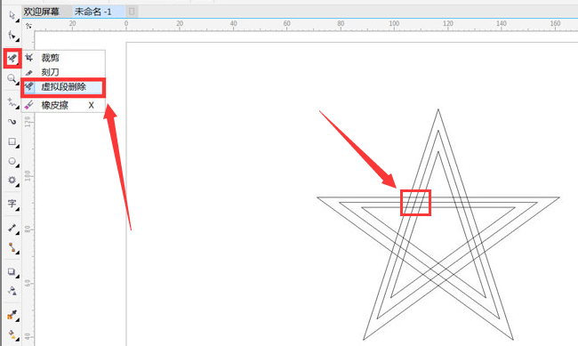 4.点击形状工具按钮,双击五角星的各个节点,断开重叠线条