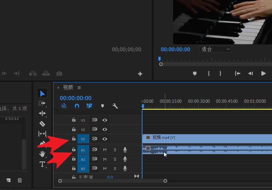 此时视频被分别放置到了音轨和视频轨。A1为音轨。