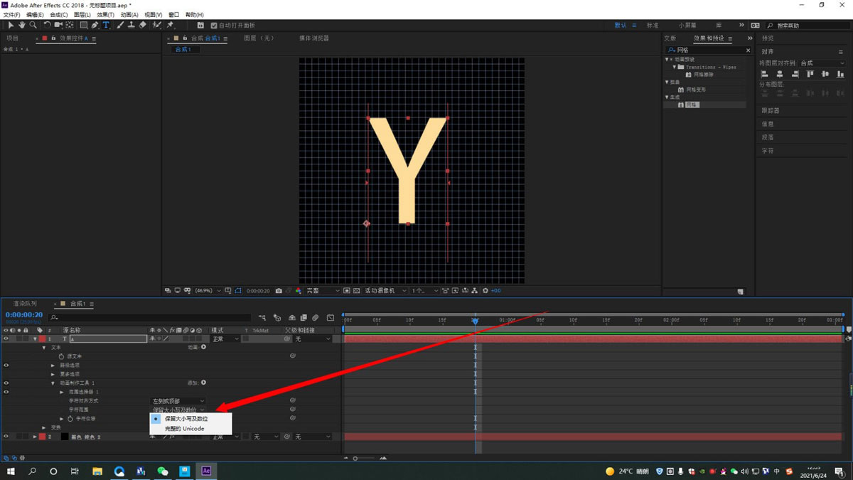 1.首先新建一个文字,输入任意字母,调整位置和大小