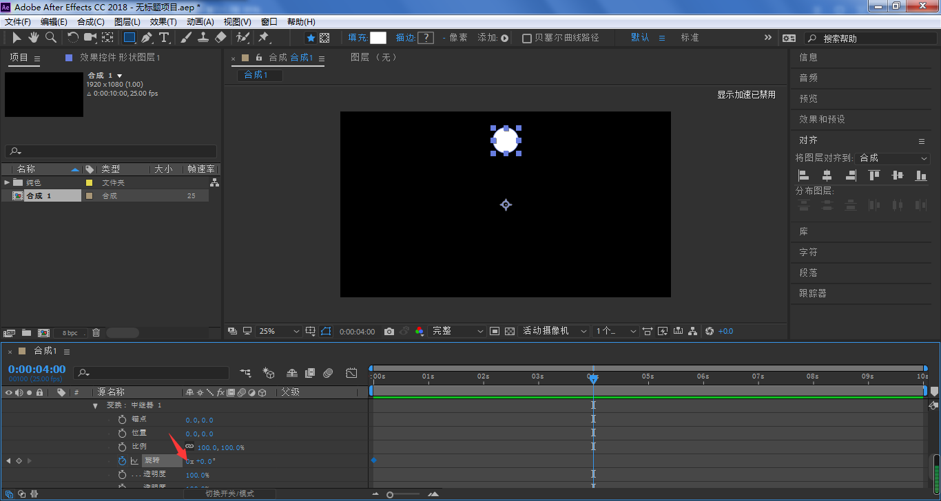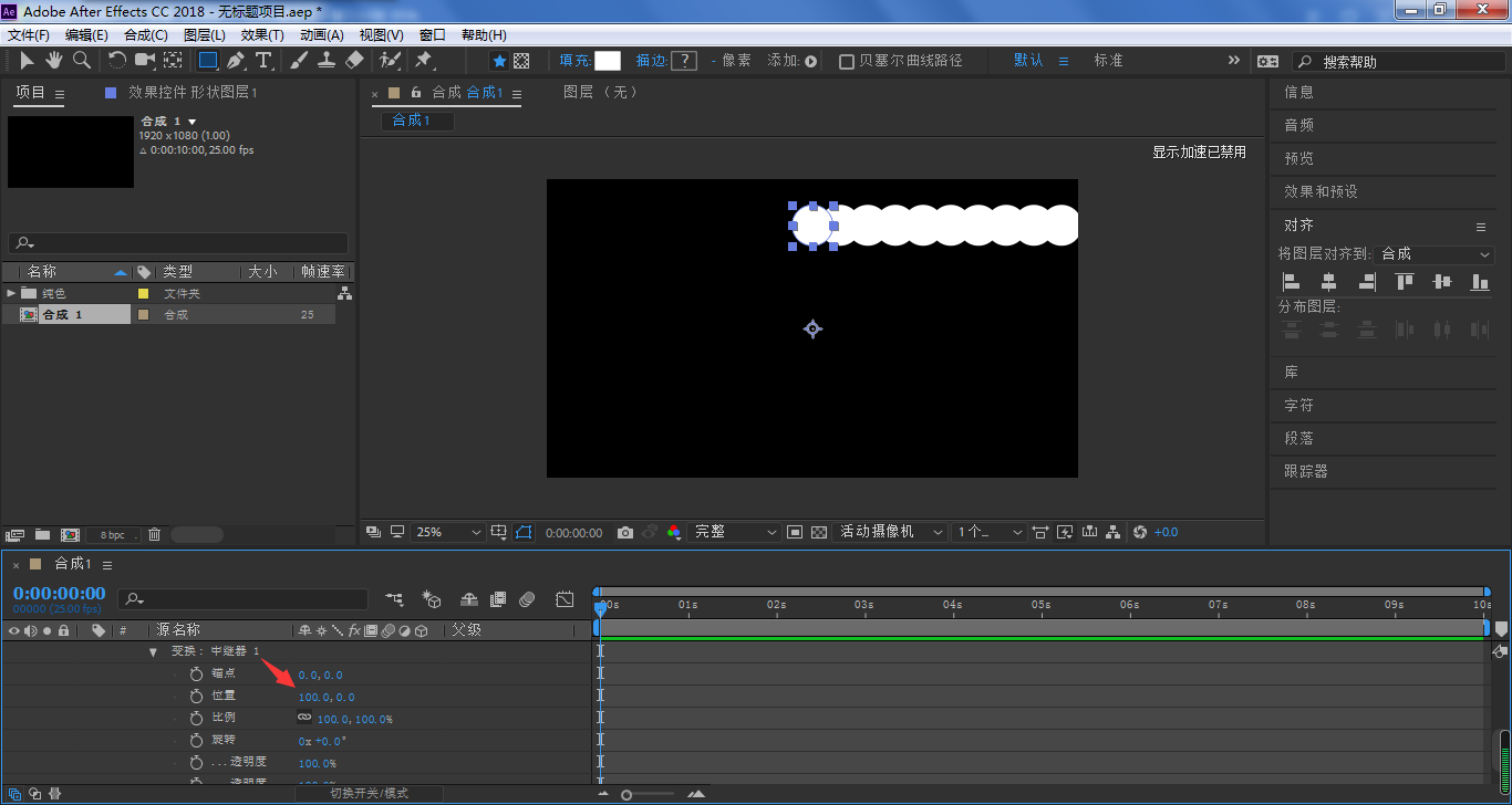 然后调整位置属性的Y参数,让圆形可以绕着锚点做旋转运动