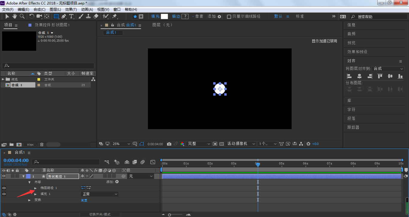 首先展开形状图层下的椭圆路径