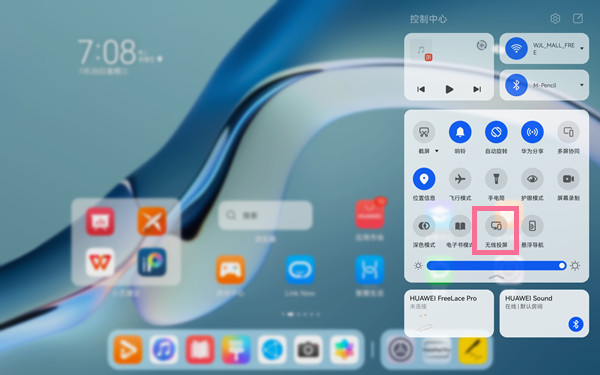 你也可以从平板右侧下滑打开控制中心,点击“无线投屏”按钮完成投屏。