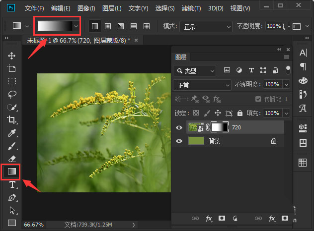 随后选中蒙版,点击,选择白到黑的渐变颜色,然后从左向右拖动渐变即可。