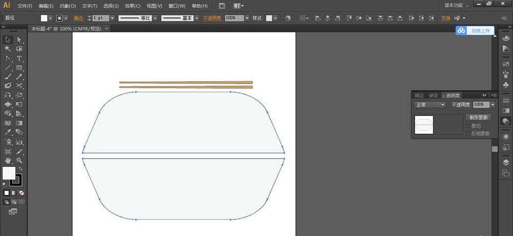 选择矩形工具绘制一矩形,放在圆角矩形上方,选中两个图形,执行效果-路径查找器-剪去顶层,饭盒一边已绘制完成。
