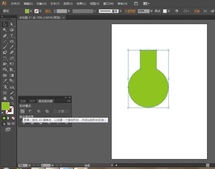 选择两图形,执行效果-路径查找器-联集,将图形结合在一起。