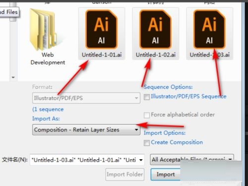 随后打开AE,导入刚刚保存的AI文件。注意选择合并类型。