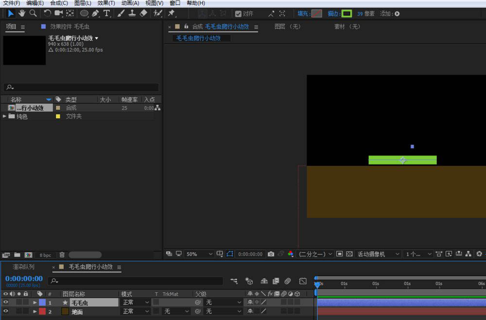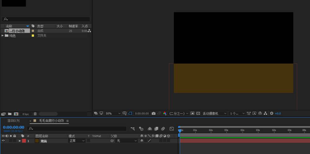 新建一个纯色层,颜色设置为泥土的颜色,调整位置,作为毛毛虫爬行的地面。