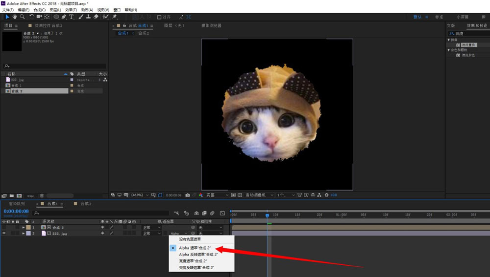 1、首先新建合成,绘制正圆,添加湍流置换效果