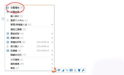 右击输入法的工具栏,在下拉列表内,依次点击“设置属性”按钮。