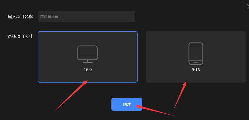 然后点击开始创建项目选择项目视频的比例点击按钮。