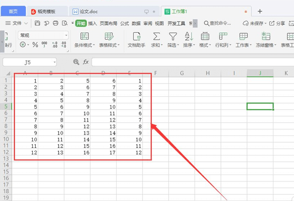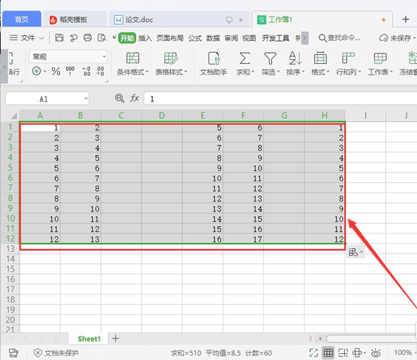 1、首先打开想要删除空白列的文档,选中想要删除空白列的区域。