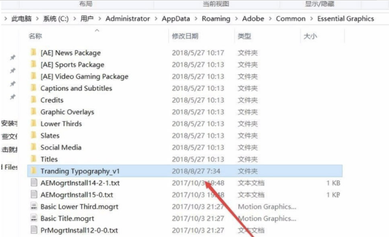 3.按照AppData—Roaming—Adobe—Common的步骤打开Essential Graphics子文件夹,将字体文件夹一键粘贴保存即可