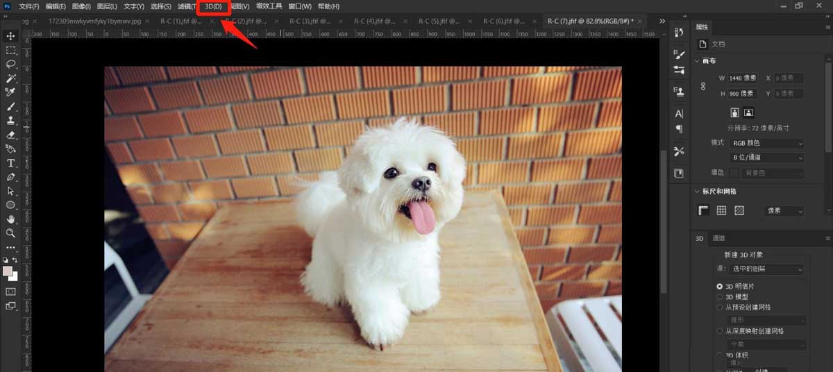 首先打开菜单栏下的“3D”选项;