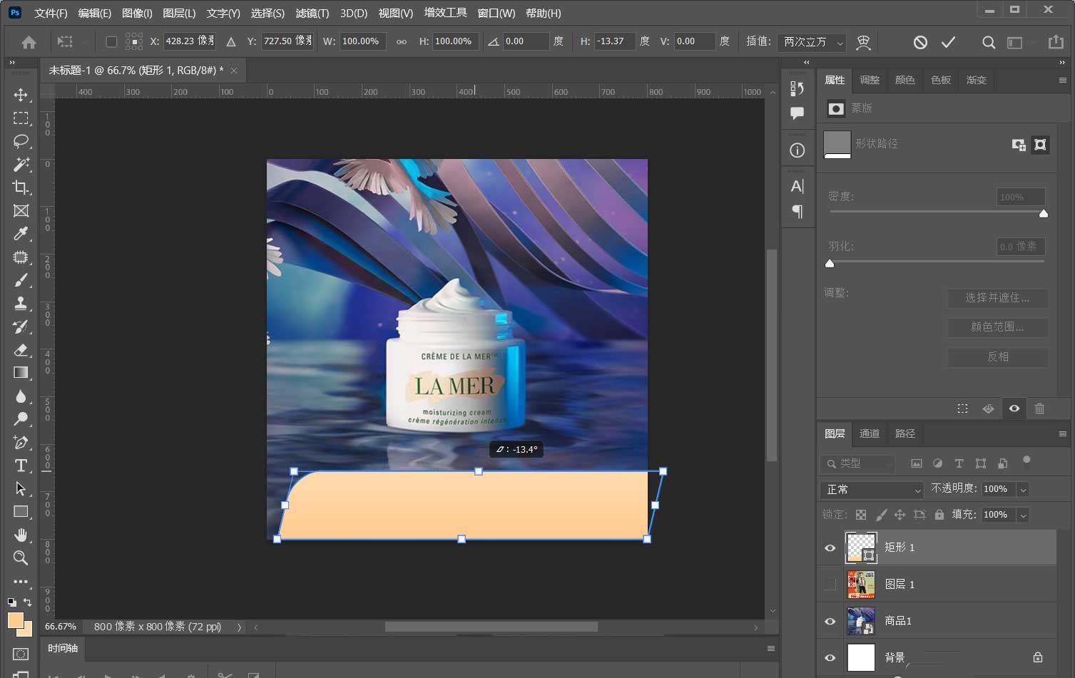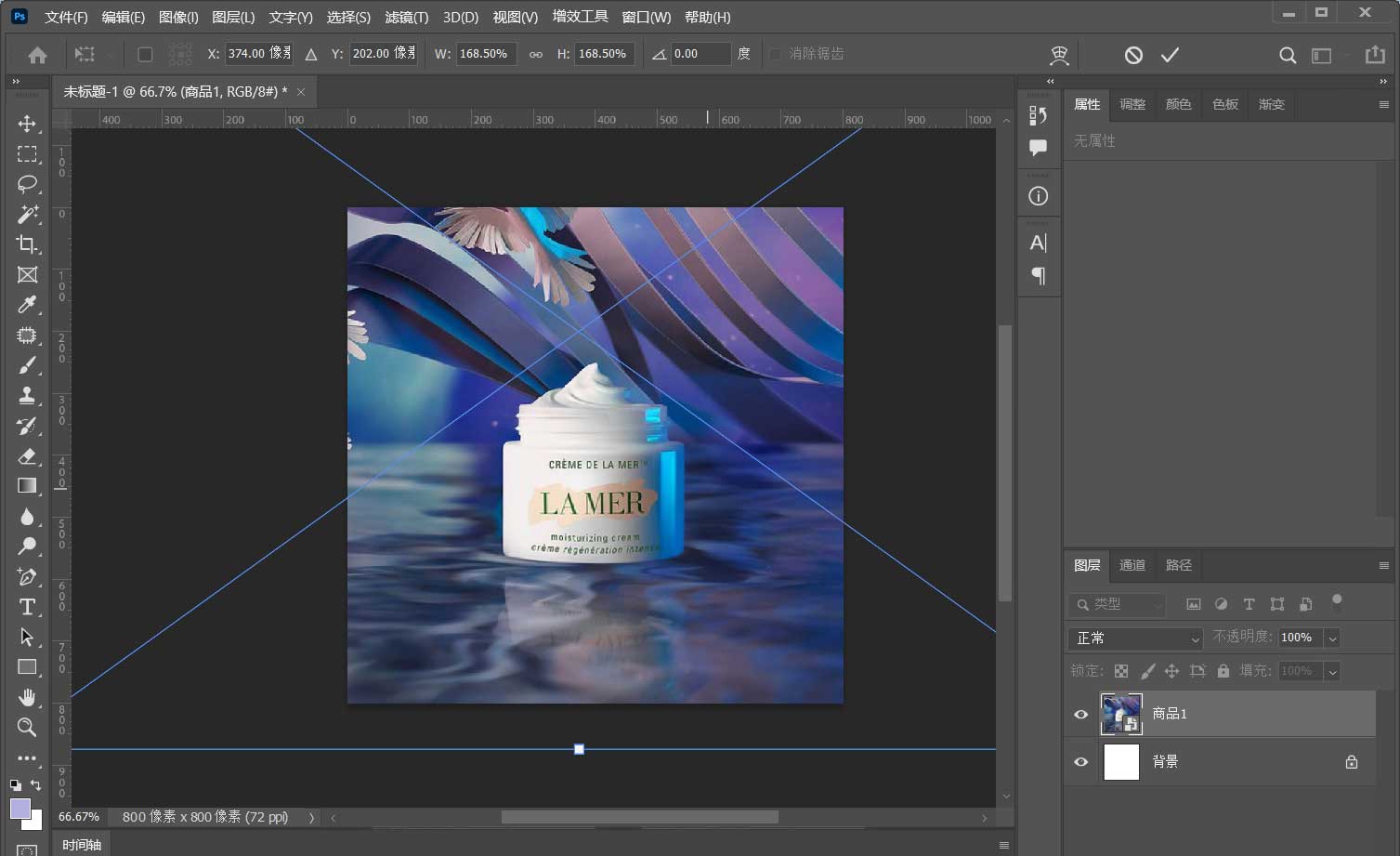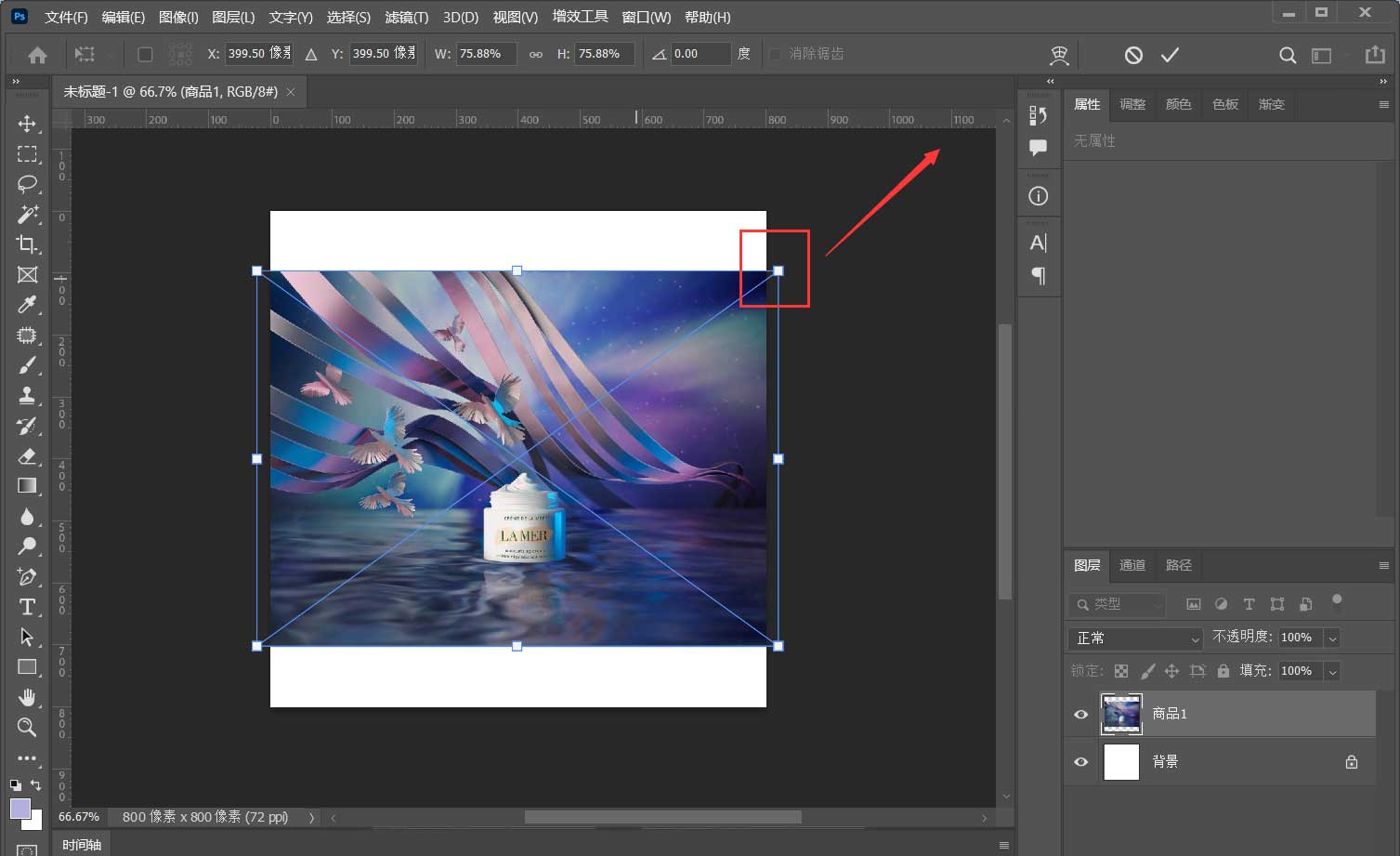 然后导入一张商品图片,按进行变换,按住用鼠标拖动图片右上角进行缩放调整。