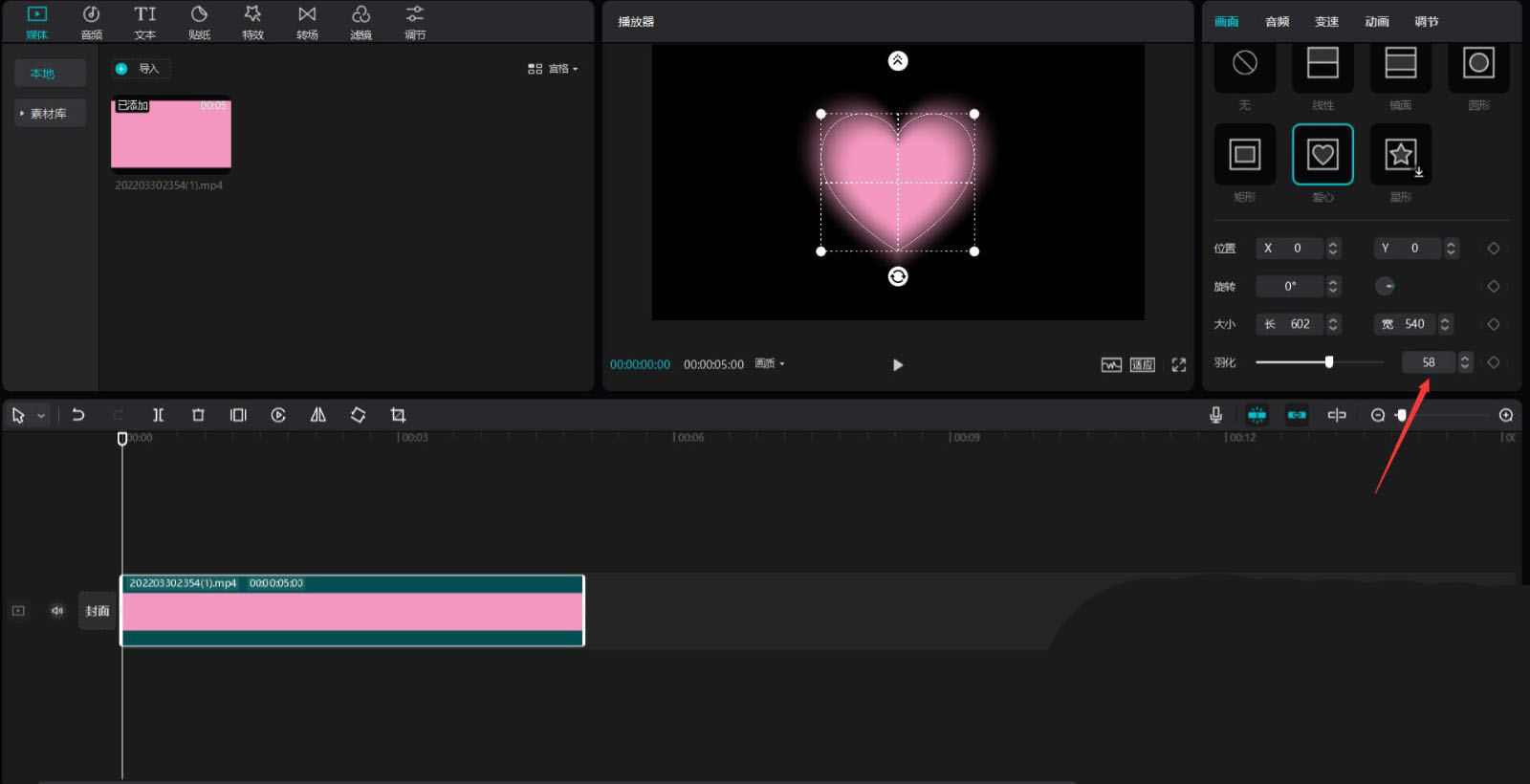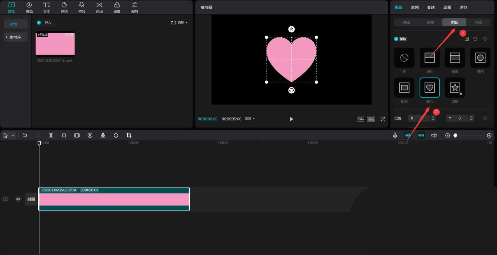 点击蒙版按钮,选择爱心蒙版,见下图。