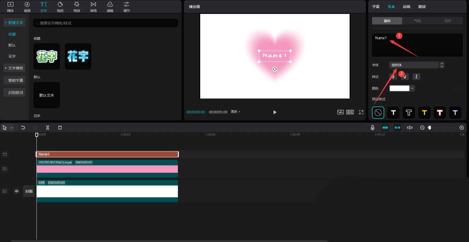 更改文本内容为男生的名字,然后更改字体为悠然体,见下图。