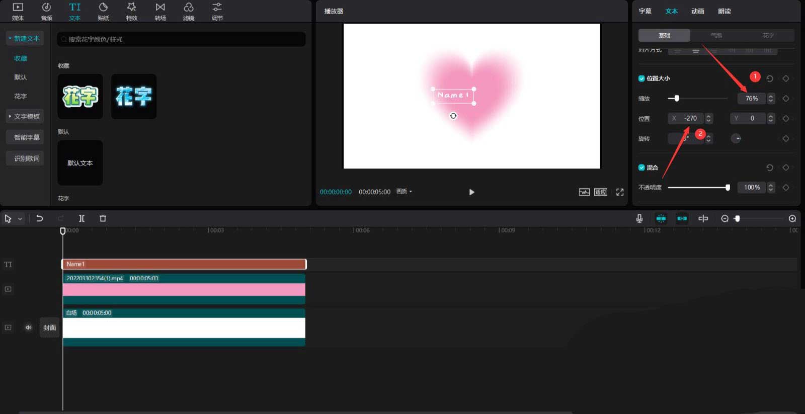 选中复制出来的文本素材,更改文本内容为女生的名字,见下图。