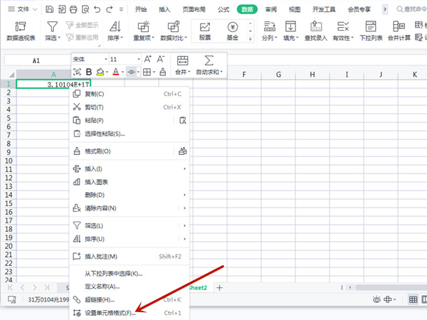 WPS表格里数字3.10104E+17如何改