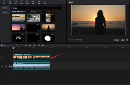 重新在搜索栏中输入剪影两字,选择一段剪影素材,将其添加到视频轨道中。