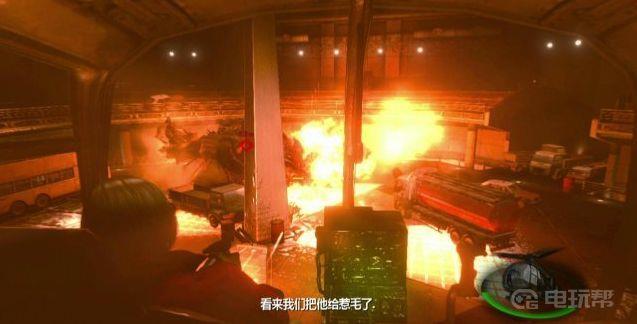 2、用机枪干掉3架渣渣敌机后。会给武装直升机来个特写。这时候右移视角,在大楼的广告牌上立着纹章18。摇晃机身,躲避攻击,飞弹齐发。击落敌人后是下个boss战,西蒙斯变身暴龙时要一直移动躲避它的甩尾攻击。利用中央的石柱抵挡它投掷的汽车。多利用的地上的油桶。皮糙肉厚要打上几分钟才会触发剧情。