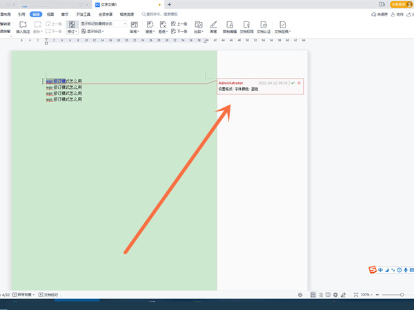 2、处理需要修改的文字,此时在文本的右侧就会显示出修订记录了(如图所示)。