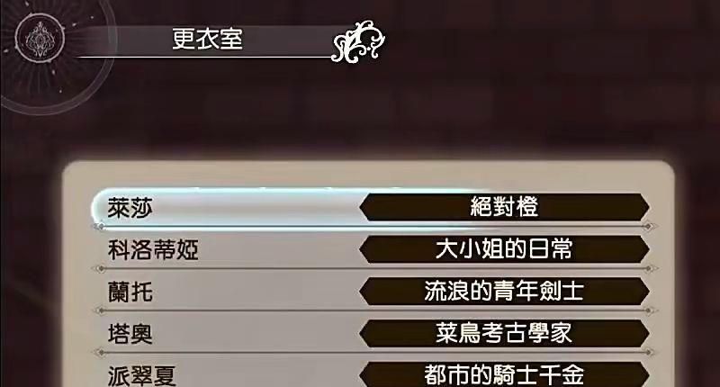 3、另类风格服装组合(合计21种):包含莱莎、兰托、塔奥、科洛蒂娅、派翠夏、赛莉、克里佛德的另类风格服装组合。各角色3种,共21种。夏日回忆服装组合(合计16种):与前作早期特典「夏日冒险!」,以及前作数位豪华版服装组合「夏日风格」、「另类款式」相同设计的本作专用服装组合。包含莱莎、兰托、塔奥、科洛蒂娅各4种,共16种。