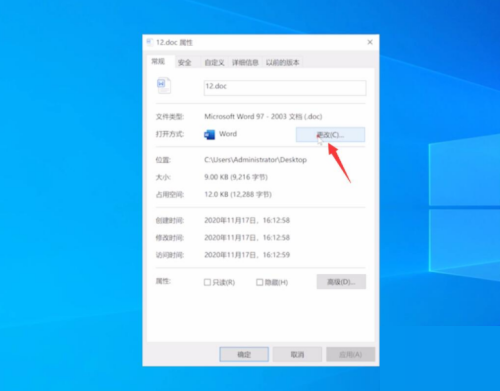 2、然后在弹出的新对话窗口中,在打开方式旁边,点击更改。