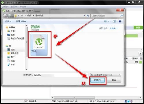 第三步、在打开窗口中,选择需要下载的Torrent文件,点击打开按钮,即可完成添加。