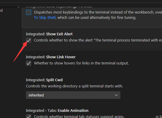 4、接着去掉勾选上show exit alert选项;