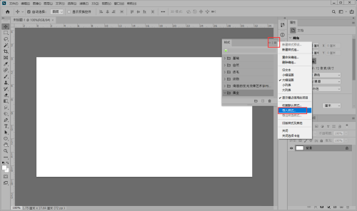 2、然后在样式面板中,点击右上角菜单图标打开菜单,点击“导入样式”。