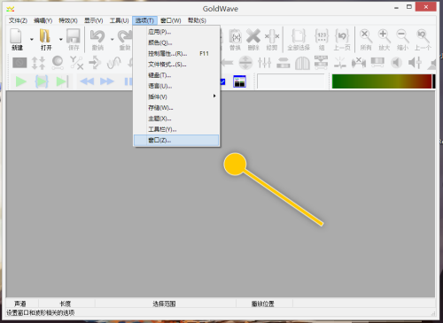 2、然后在“GoldWave”主界面中,点击“选项 > 窗口”菜单项。