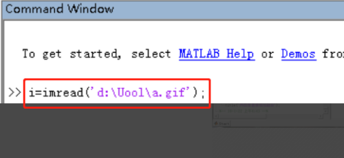 2、然后在右侧的指令栏中输入如图所示的代码(即输入图片的储存位置)