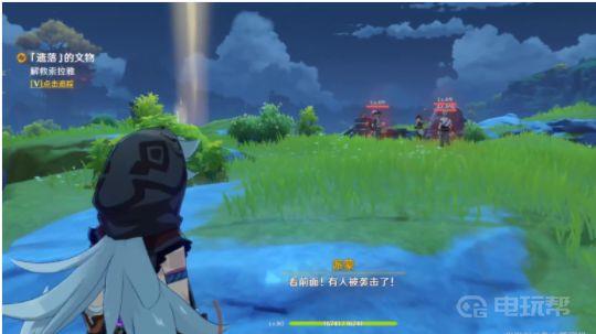 3、对话完毕之后,需要来到指示的位置帮助宝儿找到丢失的物品,具体的位置在归离原右侧,距离宝儿的位置不远,可以直接走过去。来到这里之后需要击杀一些丘丘人,拯救被丘丘人困住的学者索拉雅。