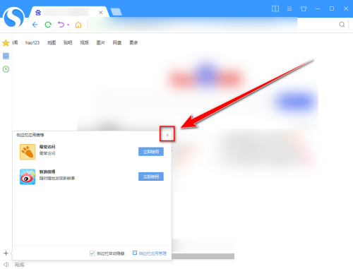 4、最后点击“侧边栏应用”窗口右上角的“X”按钮,即可隐藏侧边栏。