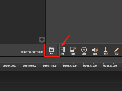 2、然后点击素材。