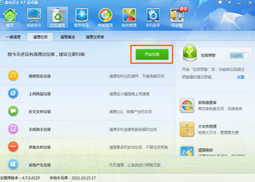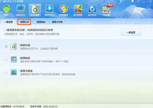 金山卫士怎么清理电脑垃圾