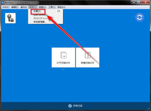 2、然后在Bandizip窗口里,点击菜单栏上的“选项”。