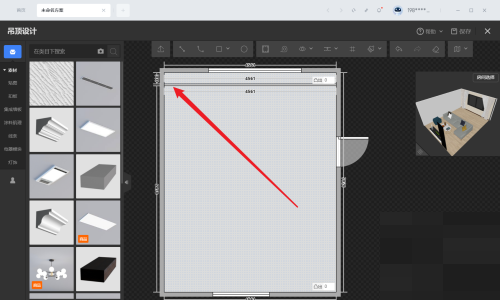 1、首先在酷家乐中打开设计方案,选择顶面,然后进入吊顶设计。