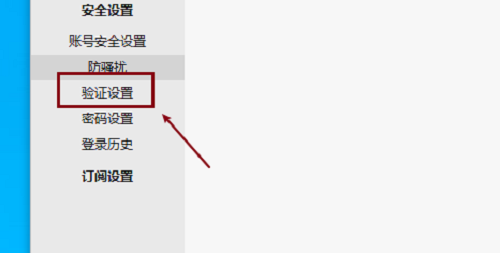 第三步:在设置界面,点击左侧的验证设置,如图: